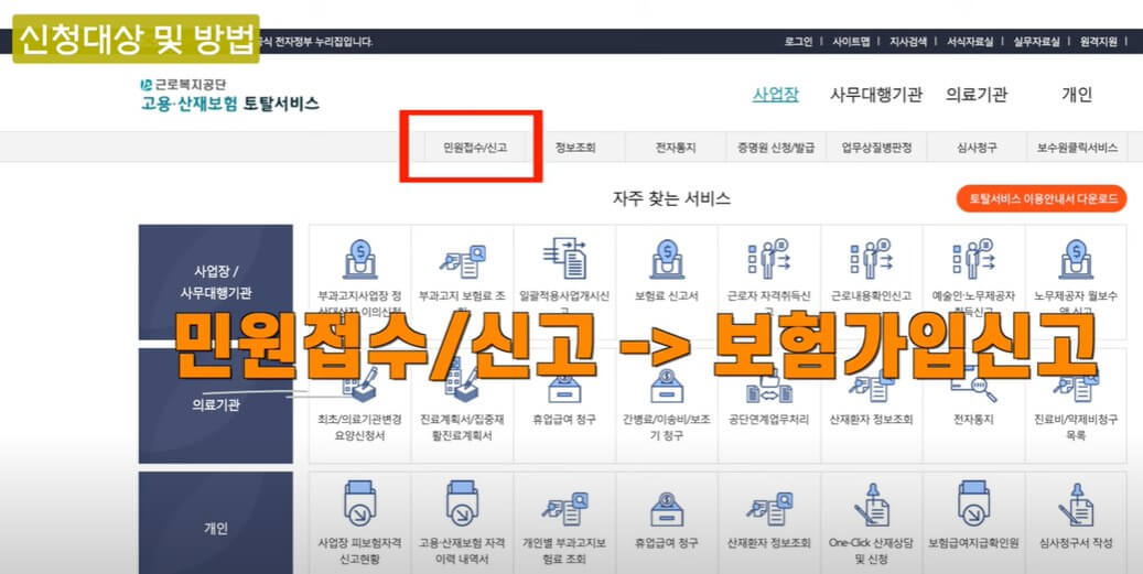 근로복지공단의 '고용산재보험 토탈서비스' 누리집에 방문해 신청하면 됩니다.