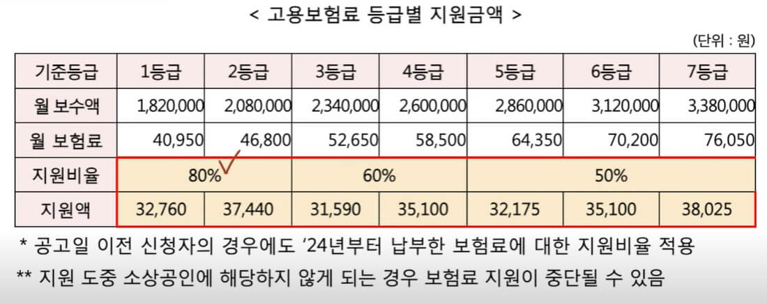 50~80%에 해당하는 보험료를 지원받을 수 있습니다.